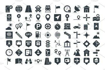 图穷联素材库 » 75个地图和导航矢量图标 75 Maps and Navigation Vect