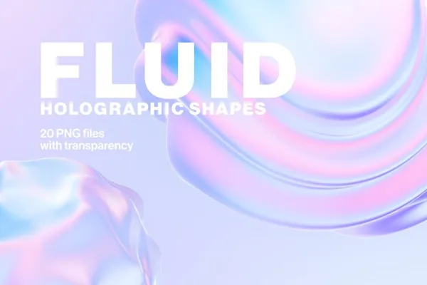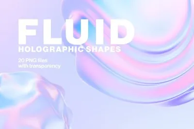 图穷联素材库 » 潮流炫彩流体镀铬金属全息渐变3D抽象形状高清图片设计素材 Fluid Holographic Shapes