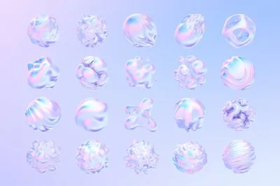 创意充满活力的流体全息形状系列,由 20 种独特的 3D 设计元素组成。每个文件都是具有透明度的高分辨率 PNG,画布大小为 6000 x 6000 像素,分辨率为 300 dpi。具有全息颜色波浪和波纹的抽象 3D 液体形状非常适合背景、视觉品牌、社交媒体帖子、横幅、海报设计、包装、覆盖、传单和其他很棒的设计产品。明亮的彩虹色流体设计 适合您时尚设计的液体形状不会让任何人无动于衷!