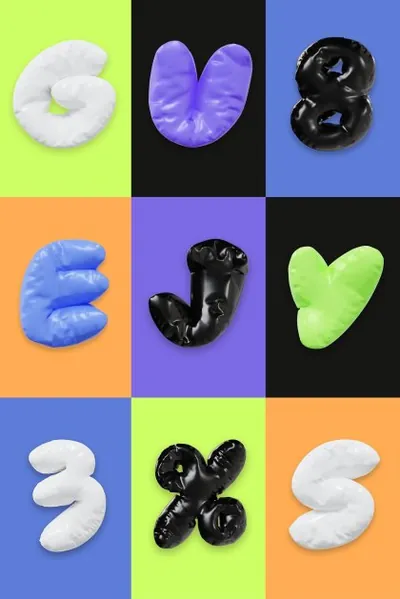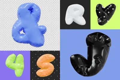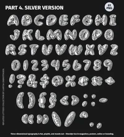 图穷联素材库 » 高质量卡通稚嫩笨拙银色镀铬金属彩色气球字母数字PNG图片素材合辑 3D Inflated Type