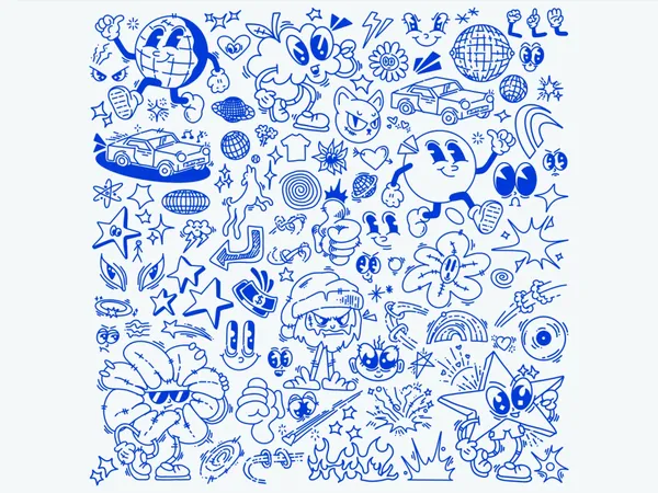 图穷联素材库 » 高质量复古Y2K千禧年日式动漫独特卡通人物矢量插画元素设计素材 Cartoon Asset Pack