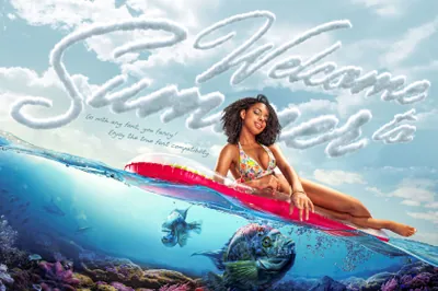 图穷联素材库 » 高质量超现实主义旷野风品牌广告海报逼真云朵文字图片效果素材 Hyper Cloudy Effect
