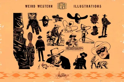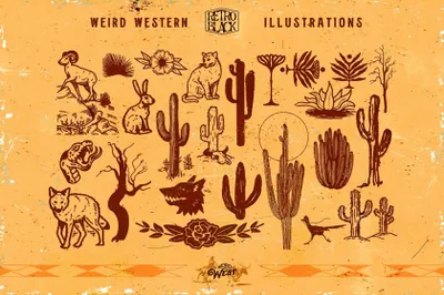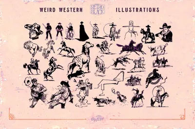 图穷联素材库 » 复古狂野西部世界荒野大镖客牛仔动物元素矢量插画设计素材 320 Western Illustrations
