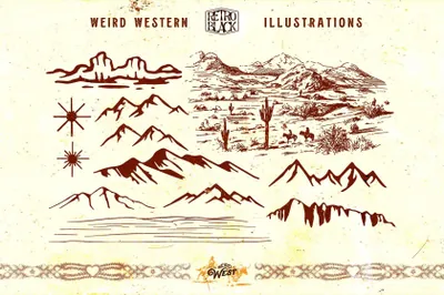 复古狂野西部世界荒野大镖客牛仔动物元素矢量插画设计素材 320 Western Illustrations