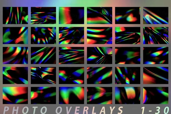 图穷联素材库 » 高质量梦幻多棱镜反射散景噪点模糊PS叠加层纹理素材 Light Dispersion Photo Overlays