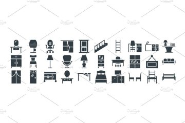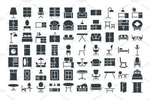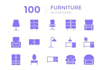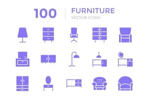 图穷联素材库 » 家具矢量图标 100 Furniture Vector Icons