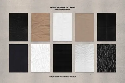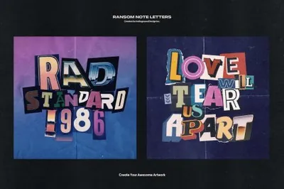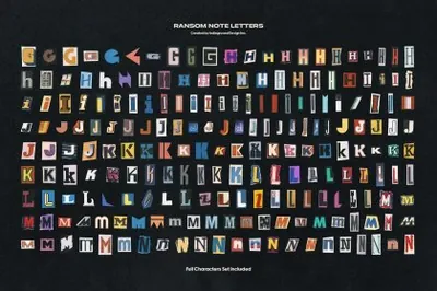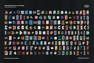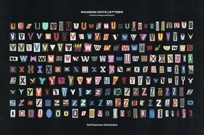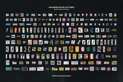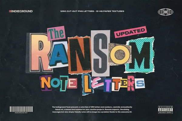 Ransom Note PNG Letters 这款由 Indieground 团队制作的很酷的产品为您提供了一个快速简单的图形资源,您可以使用它来创建酷炫的排版艺术作品,模仿大众文化中刻板的威胁信息。精选 1250 个字母和数字,仔细耐心地手工切割,以 2400 dpi 扫描,然后单独隔离并导出为具有透明背景的 300 dpi PNG 文件,供您的创意项目使用。多亏了这个很棒的工具包,赎金请求、威胁信息以及简单的友好注释将不再是问题。开个玩笑,结果将是一个激进的设计演示。以酷炫的复古氛围和美学在社交媒体上推广您的音乐或业务是理想之选。