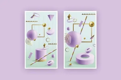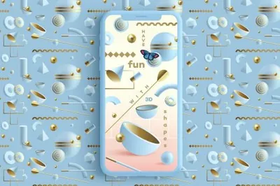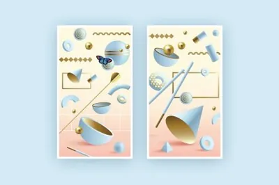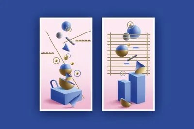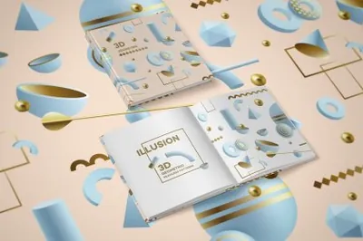 图穷联素材库 » 潮流复古孟菲斯梦幻3D抽象几何立体图形插画素材合辑 Illusion 3D Geometric Objects