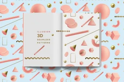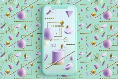 Illusion- 3D Geometric Objects Collection 还带有 8 种预制组合和 4 种无缝模式供您使用!查看预览图像以查看包含的所有元素,还可以了解 Illusion 的应用有多么无限。将其用于网页和应用程序设计、书籍封面、宣传册和传单设计、海报、品牌等等。