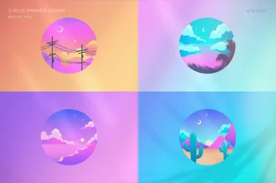 Cosmicstories以充满活力的霓虹色引入全新的夏季场景系列,以现代方式重现 80 年代和 90 年代的风格。哦夏天!是一组矢量图形风景,具有精致时尚的颗粒状渐变,将在您的项目中展现完美的夏日氛围。