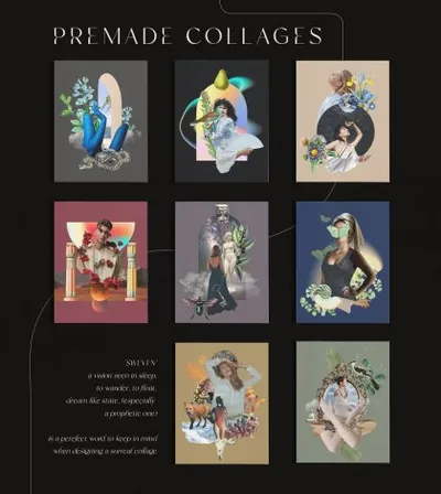 “Sweven” ——一个本身就是灵感的词——意味着在睡眠中看到的景象,漫游,漂浮,梦境般的状态(尤其是预言性的状态)是设计数字拼贴画时要牢记的完美词。该套装非常适合制作数字剪贴簿、原创产品包装、艺术墙、插图电子书或播客、社交媒体、纺织品印刷等等。