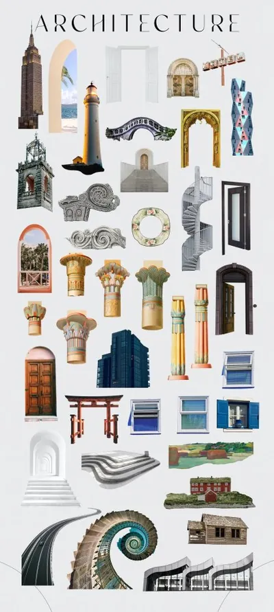 复古蒸汽波植物动物鸟蝴蝶人物花草树木建筑PNG免抠图合集包 Sweven - Collage Creator