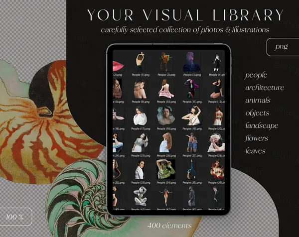 图穷联素材库 » 复古蒸汽波植物动物鸟蝴蝶人物花草树木建筑PNG免抠图合集包 Sweven - Collage Creator