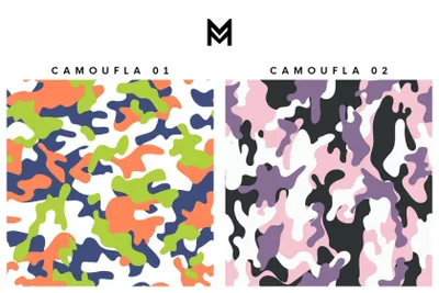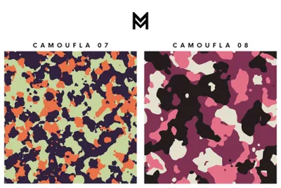 图穷联素材库 » 12款高质量品牌包装服饰设计彩色迷彩无缝拼接图案素材 Camoufla Graphics