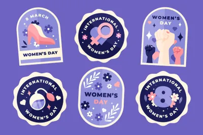 高质量三八妇女节38女神节贴纸徽章横幅宣传单海报EPS矢量创意人物插画素材合辑
