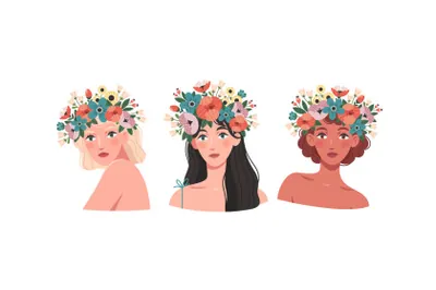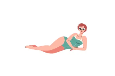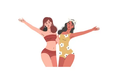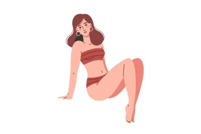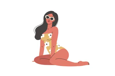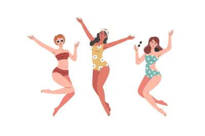 新时代个性张扬独立女性不同肤色各种姿势比基尼泳装扁平EPS矢量人物插画素材合辑