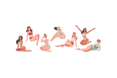 图穷联素材库 » 新时代个性张扬独立女性不同肤色各种姿势比基尼泳装扁平EPS矢量人物插画素材合辑