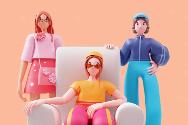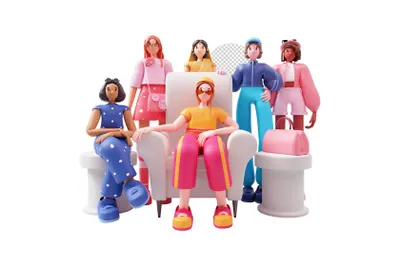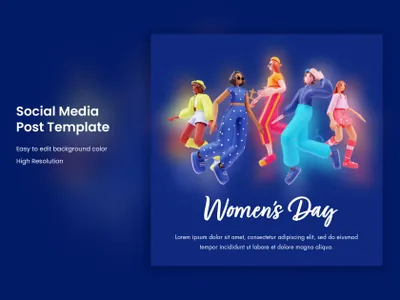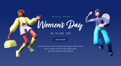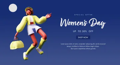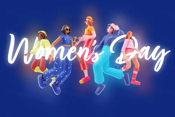 图穷联素材库 » 高质量三八妇女节女神节三维渲染3D卡通女孩女性青年插图海报PSD模板素材合辑