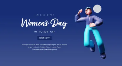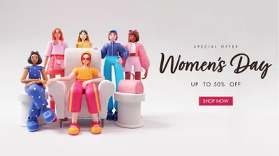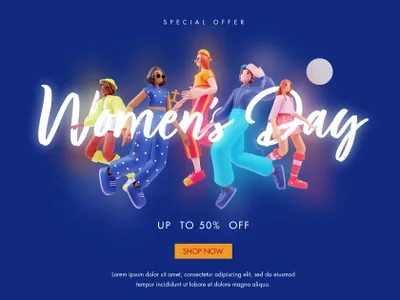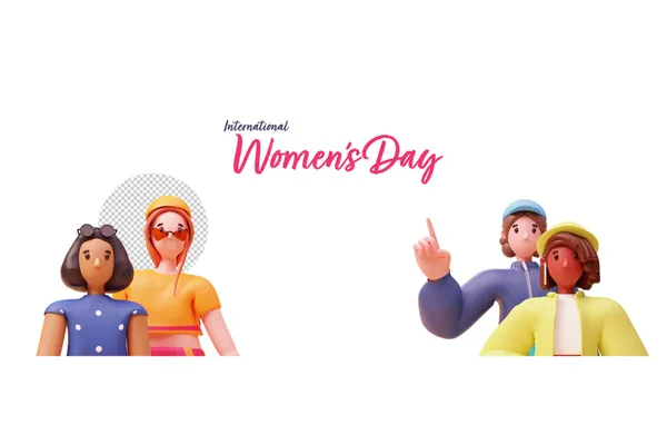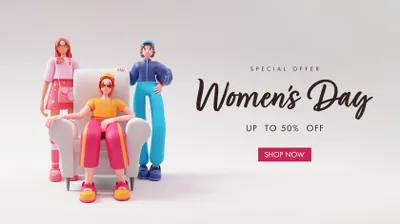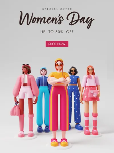 妇女节传单或海报设计最多可享受 3d 年轻女孩组优惠 50 折