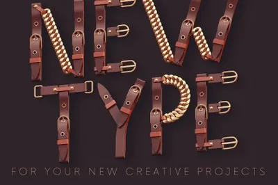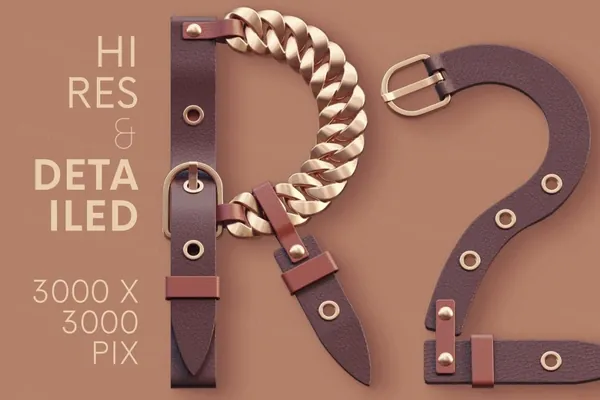 图穷联素材库 » 高质量西部野蛮主义金属扣皮带3D特效字母数字PNG设计素材 Belt - 3D Lettering