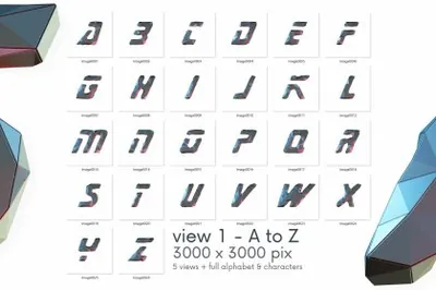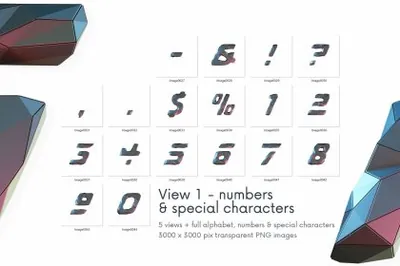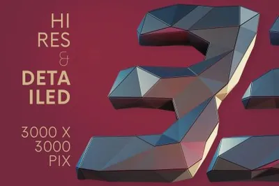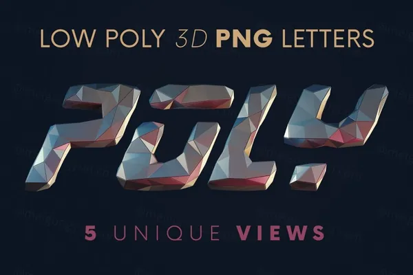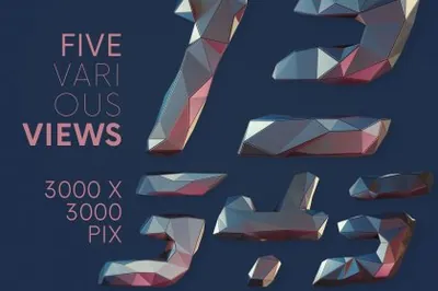 图穷联素材库 » 未来派低多边形金属3D游戏特效字母数字PNG设计素材 Future Low Poly - 3D Lettering