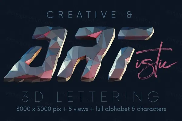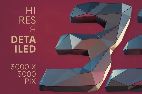 高分辨率和逼真的 3D 未来主义、技术、游戏、几何和低多边形字体渲染(3000×3000 像素 - 但字母尺寸略小)。非常适合您的标题、海报、广告 - 任何网络或印刷项目。