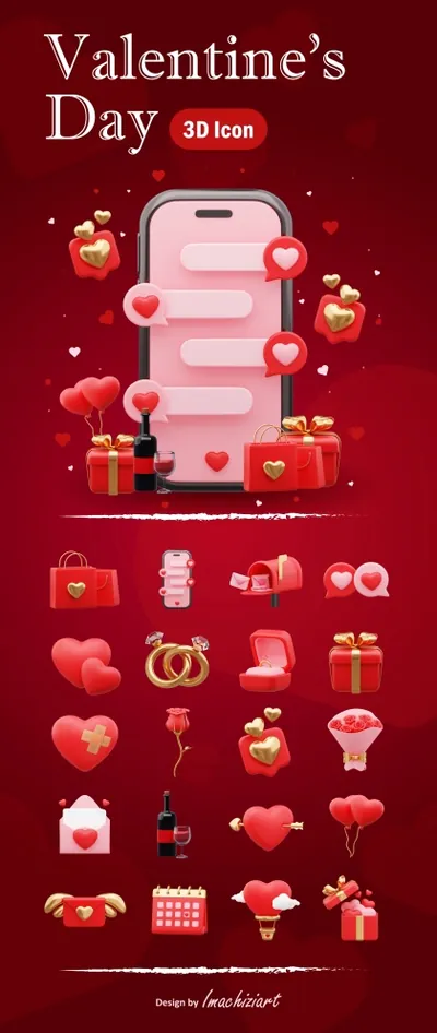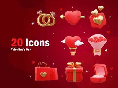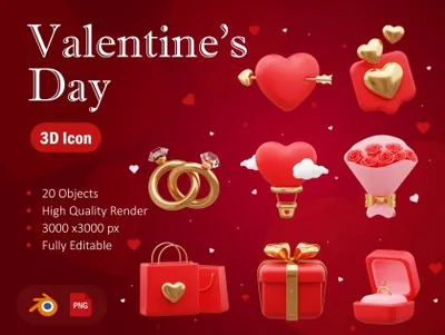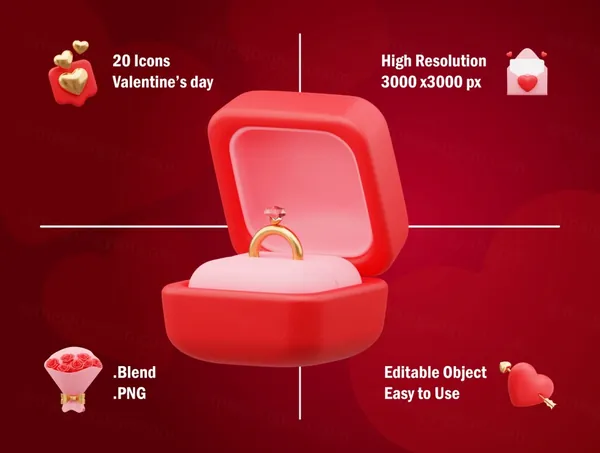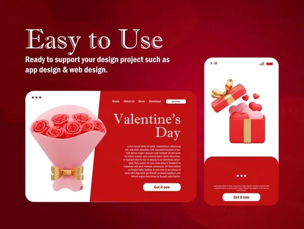 情人节 3D 资产可用于设计需求、动画、网页设计、UI 设计、演示幻灯片、海报等。