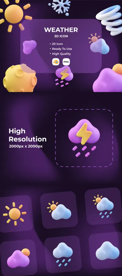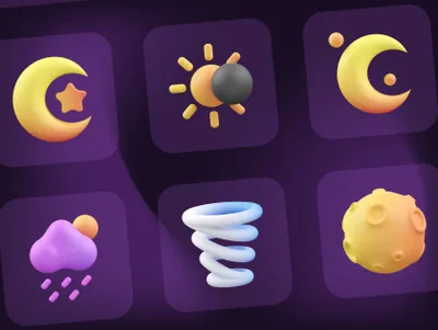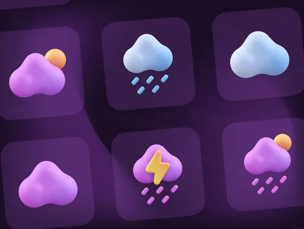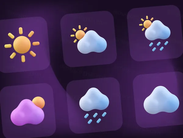 图穷联素材库 » 高质量三维渲染太阳下雨下雪月亮太阳天气主题3D插画图标素材合辑 Weather 3D Icon