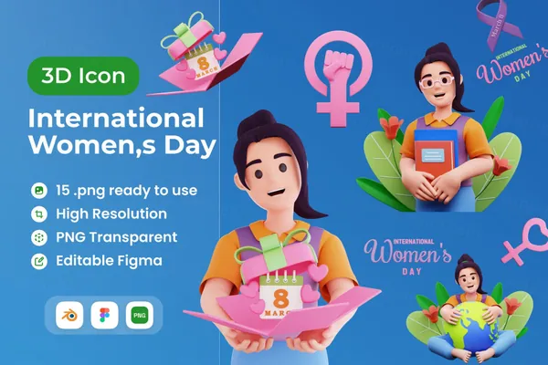 图穷联素材库 » 三维渲染三八妇女节38女神节3D卡通人物插画设计素材 Woman Days 3D Illustration