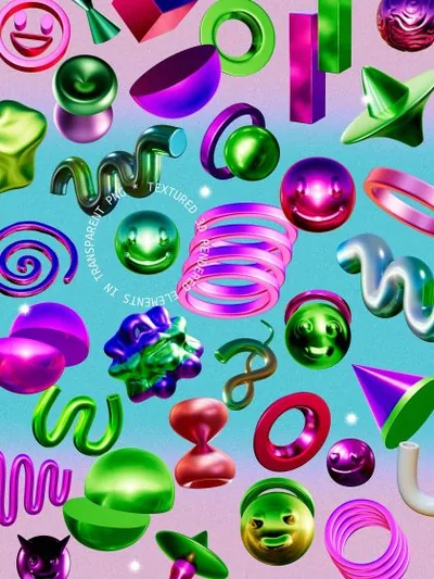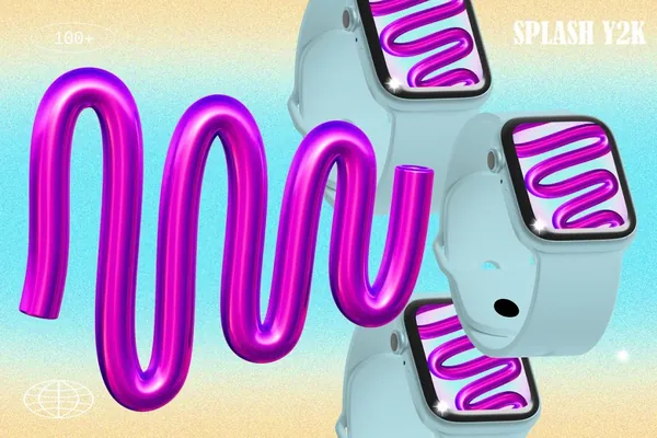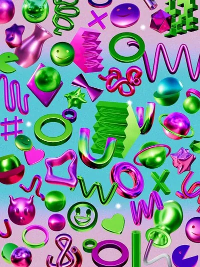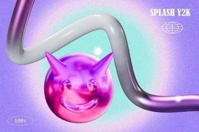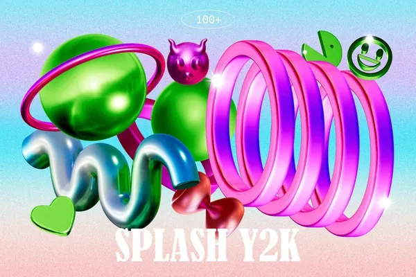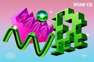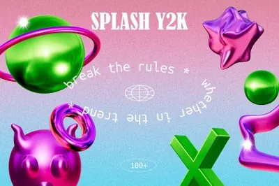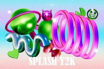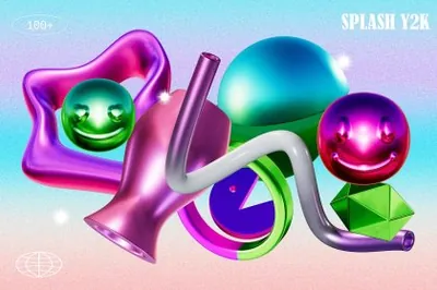 Splash Y2K - 这个系列是生动情感和抽象幻想的爆发。2023年的潮流,是对2000年初的怀念。当一切规则都被重置的时候,我们又一次闯入了一个光明大胆创意的新时代。大胆的模糊复古图形,灵感来自第一款视频游戏。该系列采用带有渐变颜色的抽象 3D 形状。