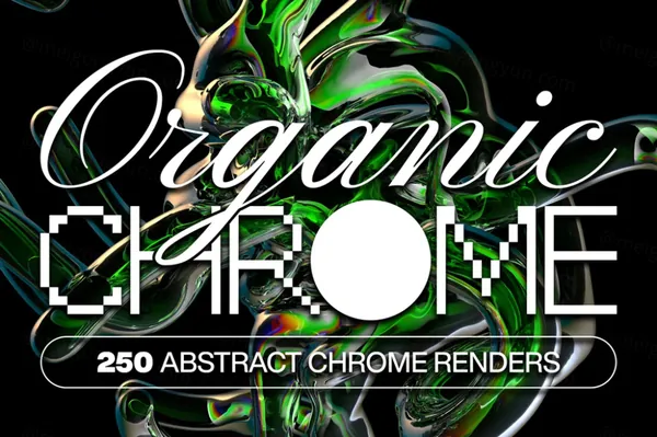 图穷联素材库 » 复古未来派酸性艺术抽象金属镀铬有机形状PNG免扣图片设计素材 Organic Chrome 3D V2