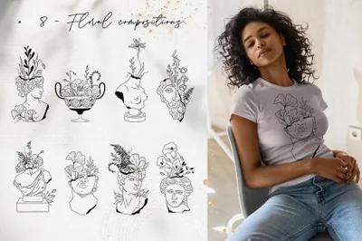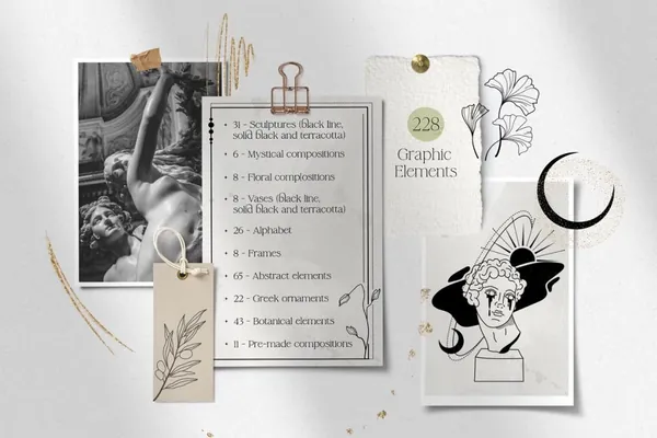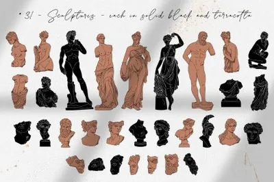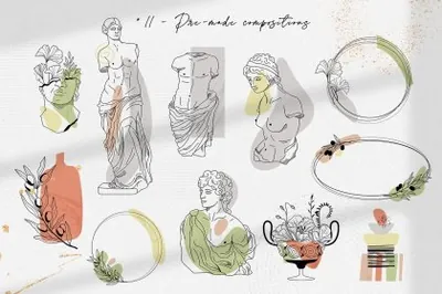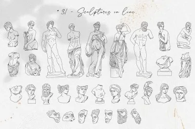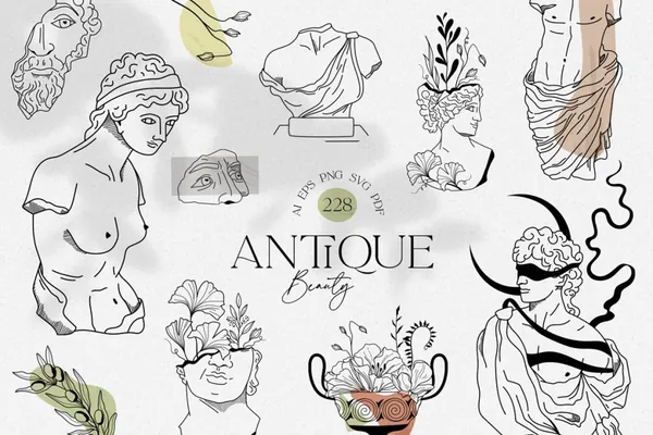 图穷联素材库 » 228张高质量古希腊神话女神男性雕塑手绘线稿矢量插图素材 Antique greek beauty kit