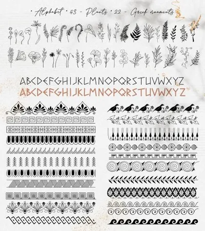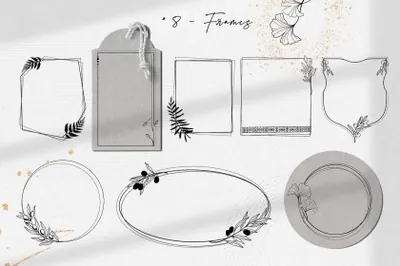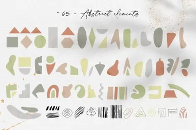 228 张高质量矢量(SVG、EPS-10 和 AI)和光栅 (PNG) 手绘图像,有 3 种颜色可供选择(黑色线条、纯黑色、赤土色;抽象的附加元素是柔和的自然色)。