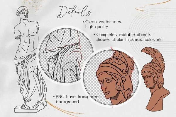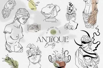 228张高质量古希腊神话女神男性雕塑手绘线稿矢量插图素材 Antique greek beauty kit