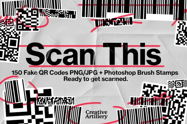 图穷联素材库 » 高分辨率二维码条形码装饰设计PNG免扣图片PS笔刷素材合辑 Scan This - PNG + Brush