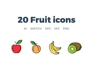 图穷联素材库 » 绘制精良的水果图标套装下载Fruit Icons