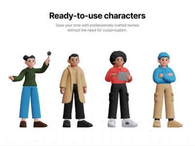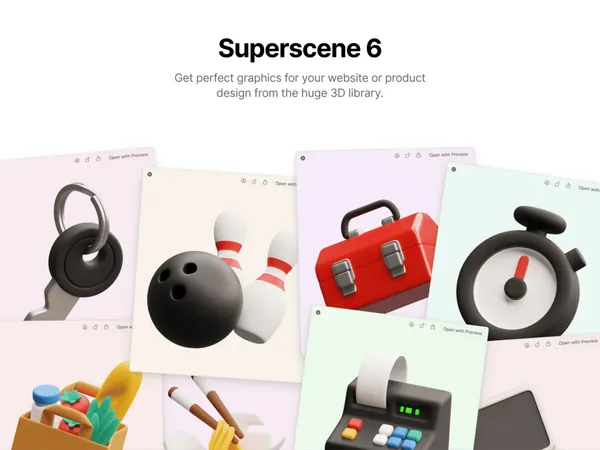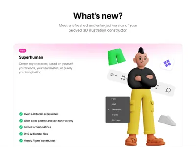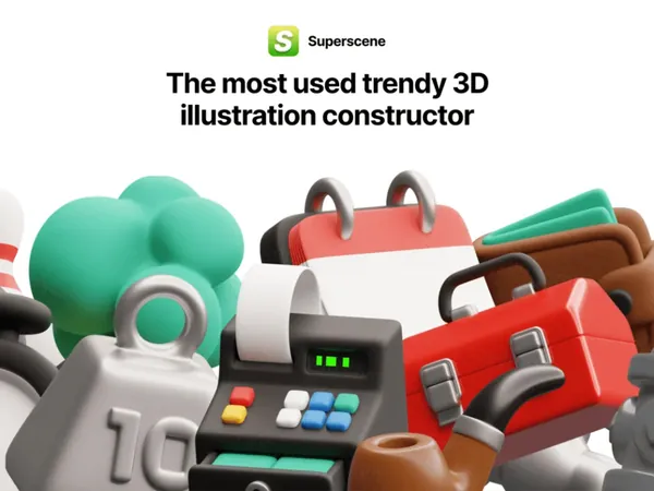 Superscene 是 3D 插图构造器,里面有有趣的角色。为您的平台创建一个完美的故事,或者只是从包中取出现成的场景。与 Blender、Figma 和 Sketch 兼容。