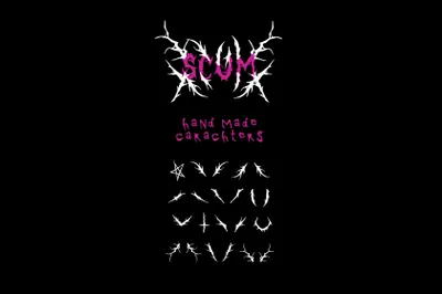 + 20 个可定制的全息贴纸 + SCUM TRASH FONT FREE + 4 艺术封面纹理