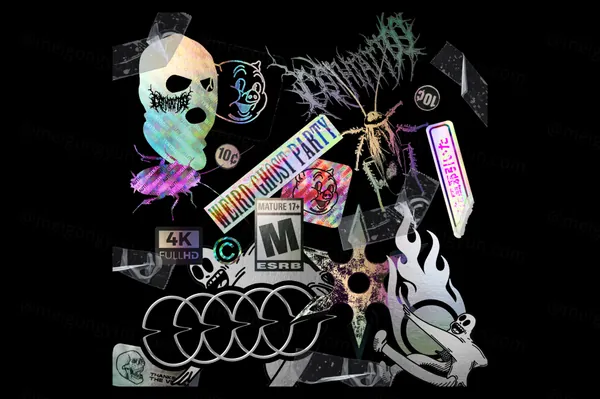图穷联素材库 » 潮流酸性艺术全息渐变镀铬金属贴纸PNG装饰素材合辑 Holographic Stickers Pack
