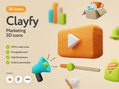 高质量橡皮泥粘土风创意卡通企业商务元素3D图标素材合辑 Clayfy Marketing 3D Icons