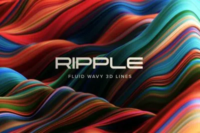 高清艺术抽象炫彩流体渐变扭曲波浪山峰背景图片设计素材 Ripple: Fluid Wavy 3D Lines