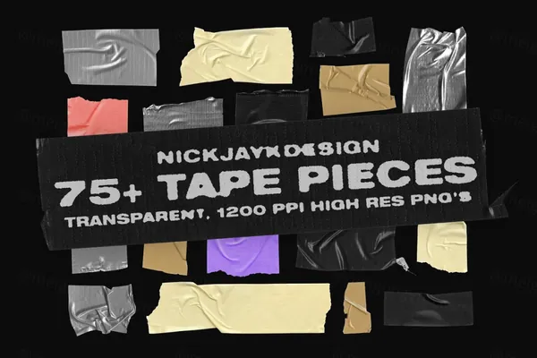 一包 75+ 透明胶带 PNG,非常适合专辑封面或旅游海报。这些纹理都是高分辨率的,因为它们都是以 1200PPI 扫描的!非常容易使用。只需拖放您在其他地方找不到的质量。