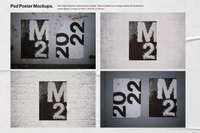 4 高分辨率海报墙模型(.psd 格式)6000 x 4000px at 300dpi