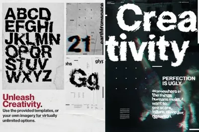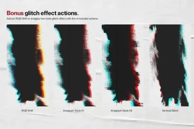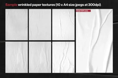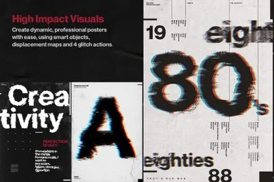 还包括 10 种高分辨率皱纹纸纹理,可用于为您的设计赋予额外的个性,加上 4 种故障动作以提供额外的冲击力!