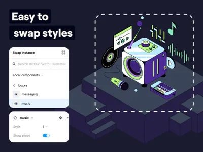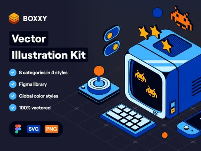 使用 BOXXY:矢量插图套件自信地步入设计的未来。通过时尚升级提升您的下一个项目,使其脱颖而出。我们的 Figma 库和完全可定制的 Adobe Illustrator 资产使您能够创作令人惊叹和迷人的作品,让您的观众着迷。