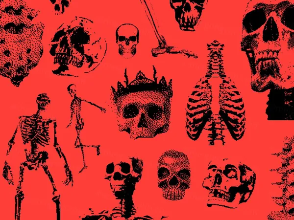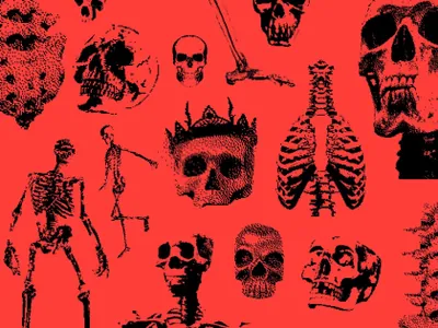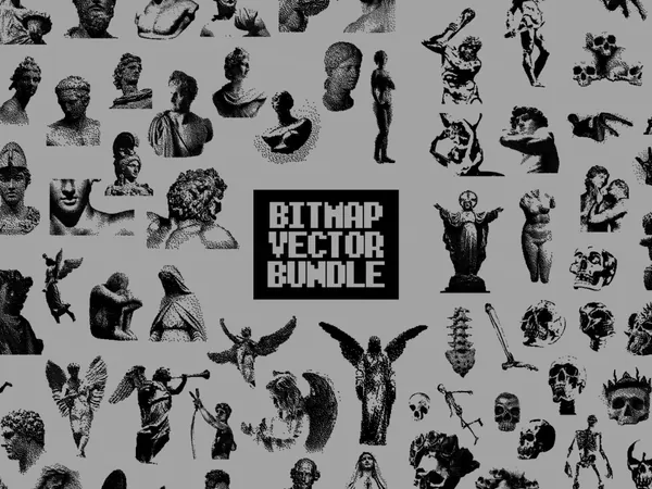 86 个雕像、头骨和随机元素,以位图样式矢量化