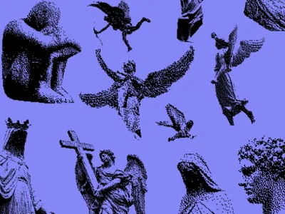 86 个矢量可以帮助您的赛博朋克或编辑项目。有雕像、头骨和随机元素,全部以位图样式矢量化。享受!