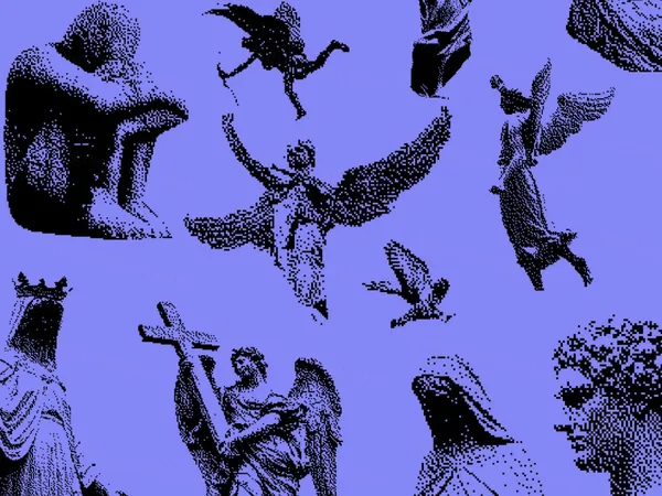 图穷联素材库 » 复古酸性艺术赛博朋克复古像素风雕像头骨随机元素装饰素材合辑 Bitmap