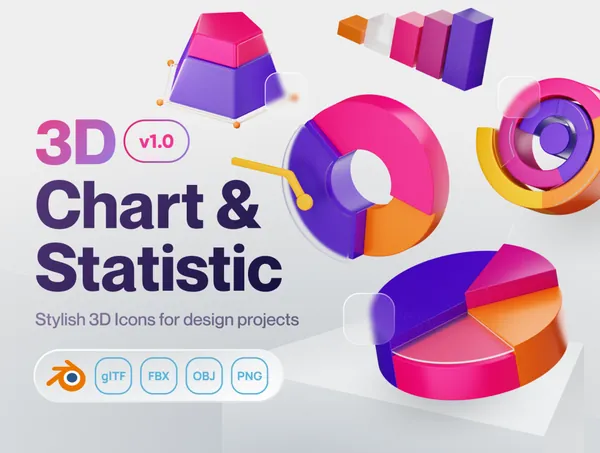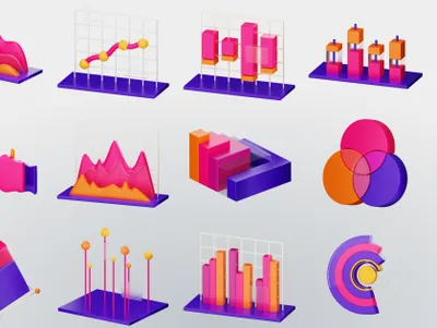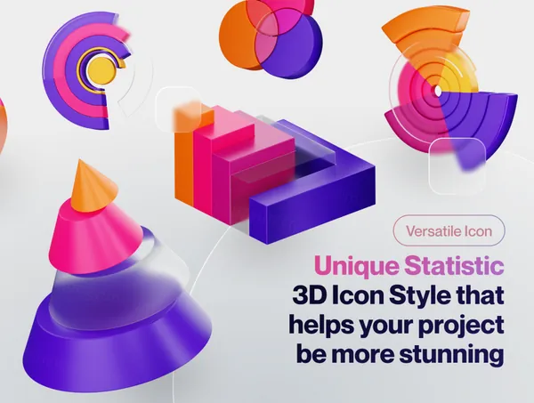 这些 3D 统计图标是在数字项目中呈现数据图标的完美方式。充满活力的色彩,会营造出大胆而充满活力的印象。