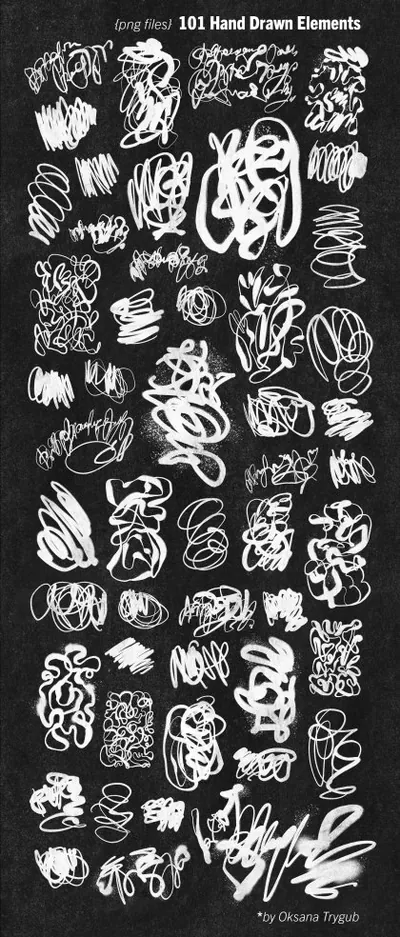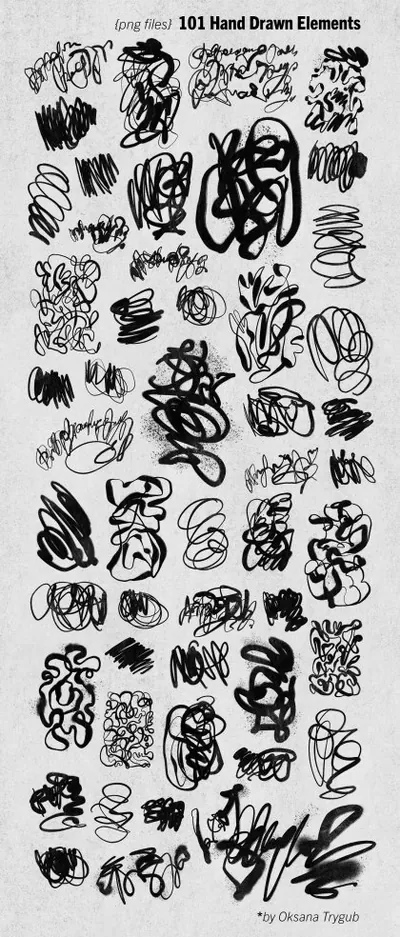 千禧年涂鸦、涂鸦和墨水艺术 | 101个PNG手绘元素
